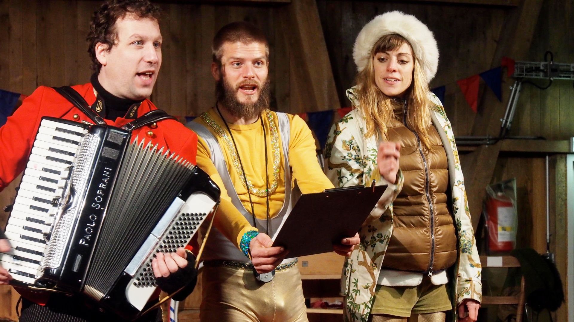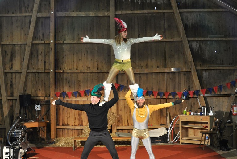 Die drei Schauspieler*innen nehmen das junge Publikum mit auf einen Rundgang durch den Zoo und lassen dabei Momente aus der Zirkusvergangenheit aufleben.